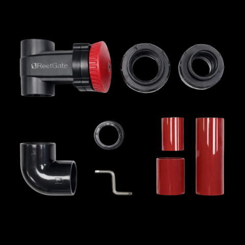 Besuchen Sie unsere Website, um herauszufinden, welches Kit zu Ihrem System passt. ReefGate ist auch mit allen Aquarienmarken kompatibel, die 32-mm-/40-mm- oder 1-Zoll-/1¼-Zoll-Rohre verwenden.